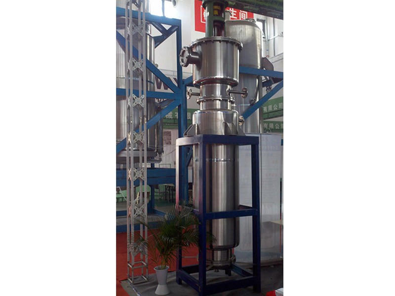 6. 適應(yīng)性強(qiáng)、操作方便: 由于薄膜蒸發(fā)器顯著特點(diǎn):適宜平穩(wěn)蒸發(fā)和熱敏性物料的蒸餾。所以高粘度的物料或者隨濃度的提高粘度急劇增加的物料,其蒸發(fā)過程也能平穩(wěn)操作