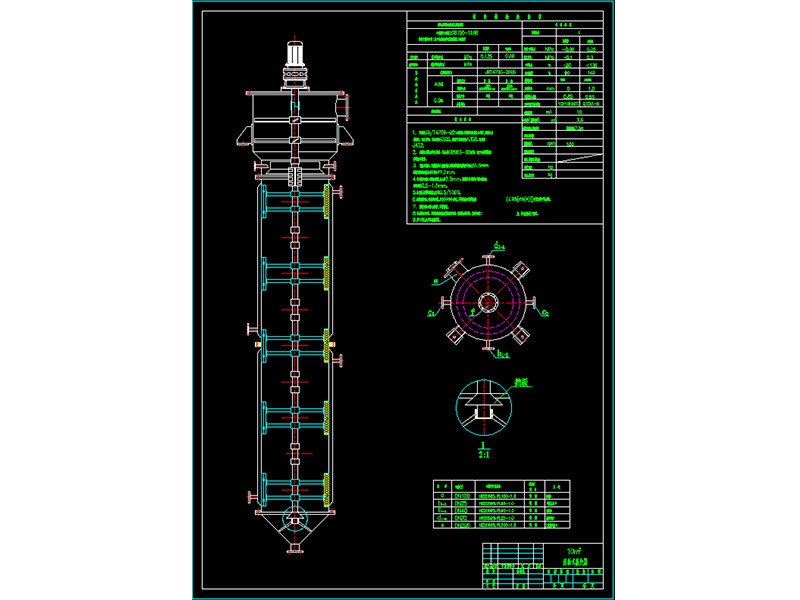設(shè)備總高 mm(A) | 加熱筒 身高 mm(B) | 分離筒高 mm(C) | 底封頭高 mm(E) | 加熱筒身公稱直徑mm(Dn) | 夾套公稱直徑mm(Do) | 電機(jī)功率 kw/h |