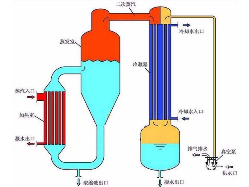 根據(jù)物料的特性及蒸發(fā)量的大小,可設(shè)計成單效或多效蒸發(fā)機組。